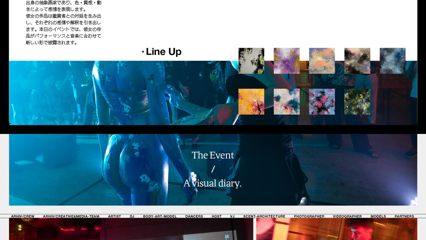 ARHIV is a creative company based in Tokyo, producing immersive art shows that merge music, performance, and visual culture. We connect International and local artists to create experiences that live beyond the event itself.