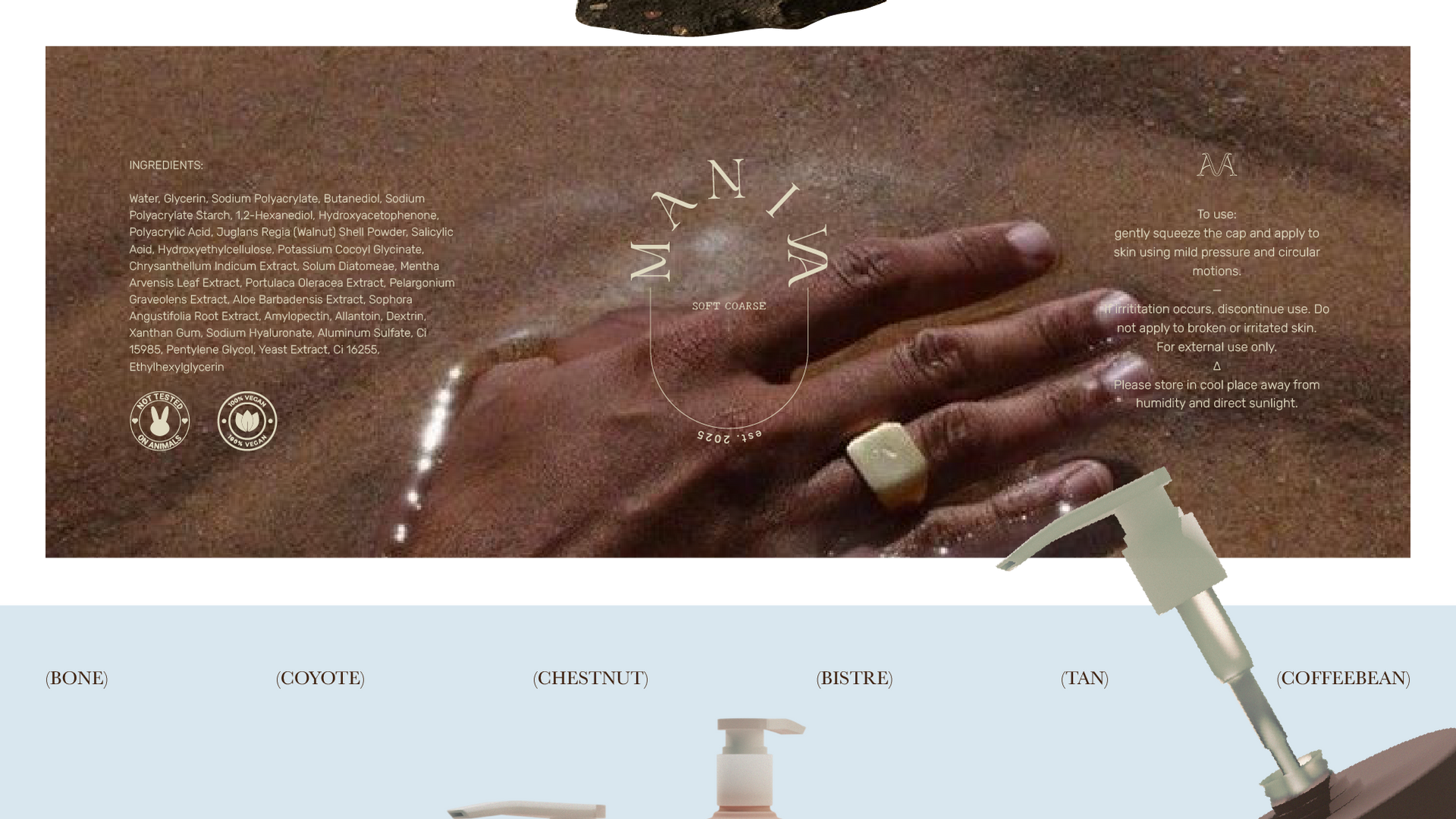 This project develops the visual and packaging identity for Maniva’s signature concept, Soft Coarse, Centered on their in-house body scrub, the work translates the brand’s core treatment experience into a coherent design system. Strong yet gentle hand techniques, visually impactful textures, and skin-to-skin interaction inform the visual direction, resulting in a sensorial identity that highlights tactility, product craftsmanship, and Maniva’s commitment to natural, hypoallergenic care.